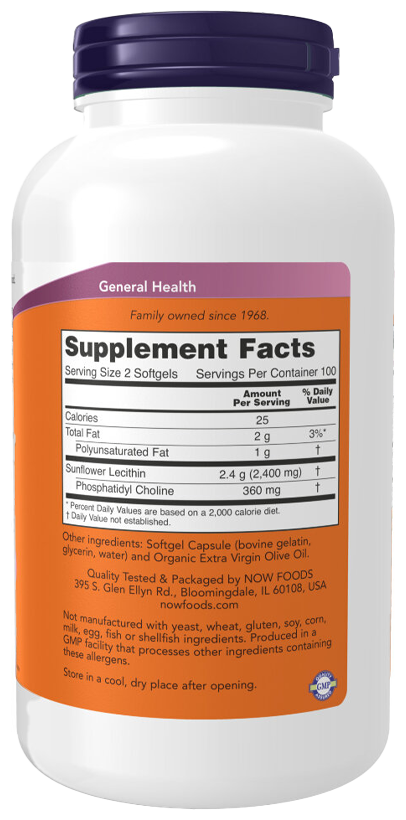 Подсолнечный лецитин содержит фосфатидилхолин, самый распространенный фосфолипид в клеточной мембране, который играет ключевую роль в сигнальной и синаптической функции клеток. Кроме того, подсолнечный лецитин содержит большое количество природного фосфатидилинозитола, фосфатидила этаноламина и незаменимых жирных кислот. Лецитин в рационе помогает эмульгировать жиры, позволяя им растворяться в воде. Организм с легкостью усваивает и использует холин, содержащийся в этом фосфолипиде.
